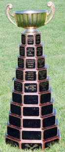 The Presidents Cup is the National Senior B level box lacrosse championship for the Canadian Lacrosse Association. The annual championship awards Gold, Silver and Bronze medals. It is in honour of the Canadian Lacrosse Association President and recognizes the contributions of all Past Presidents of the CLA. This beautiful silver trophy was donated to the Canadian Lacrosse Association in September 1964 by Mr. K.G. Thompson. The original Presidents Cup was retired to the Canadian Lacrosse Hall of Fame in New Westminster, BC in the early 1980's. The current trophy commemorates the history of leadership of the CLA and lists the Presidents of the Association and the Chair of the Board of Directors under the new structure of the CLA. |